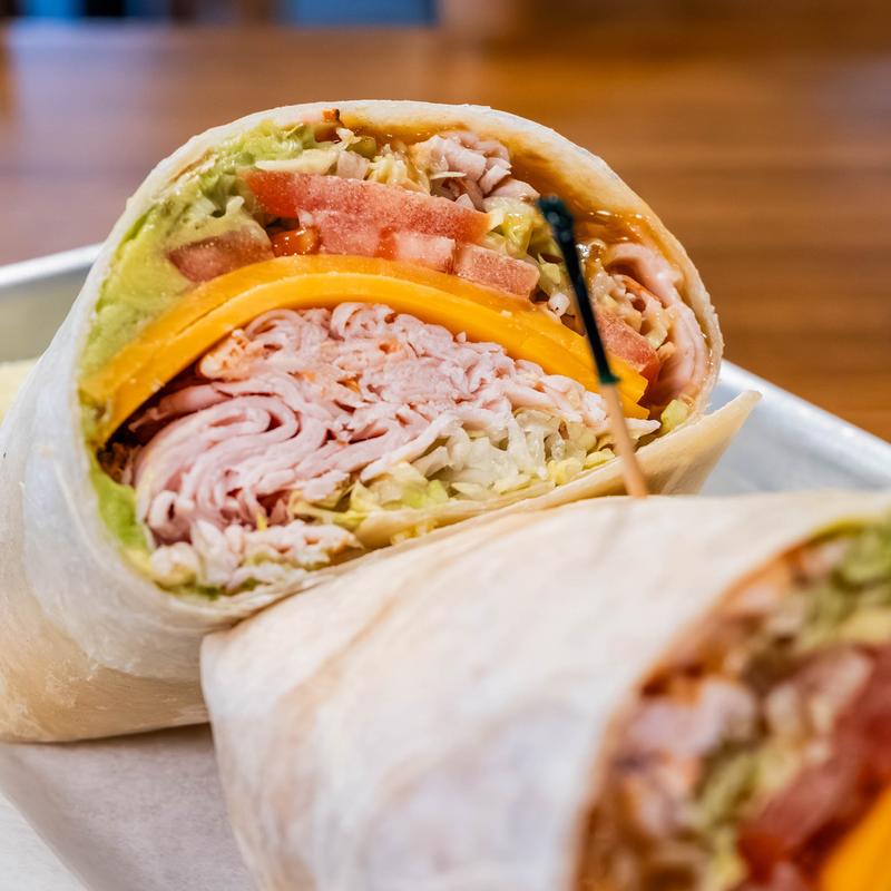 Peppercorn turkey, cheddar, avocado, lettuce, tomato, honey mustard