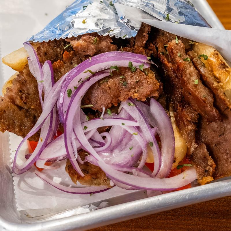 Tomato, onion, tzatziki, french fries